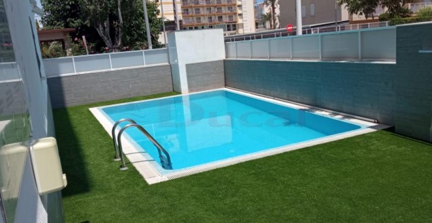 PRECIOSO APARTAMENTO A 200 METROS DEL MAR QUE CONSTA DE 2 HABITACIONES DOBLES, 1 BAÑO CON DUCHA, SALON-COMEDOR CON SALIDA A LA TERRAZA CON VISTAS Y COCINA OFFICE. CUENTA CON UNA PEQUEÑA PISCINA, SE ENCUENTRA TOTALMENTE REFORMADO Y DISPONE DE AIRE ACONDICIONADO. VT-50143-V